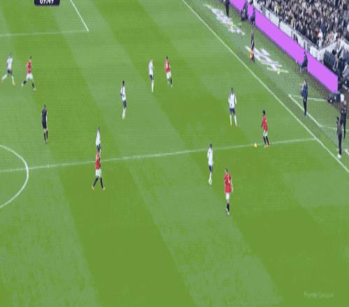 顶住了热刺的狂轰滥炸,第69分钟,阿玛德·迪亚洛送出精准长传,B费的停球世界级,但帕利尼亚迅速赶到,B费仓促出脚,放了高射炮。