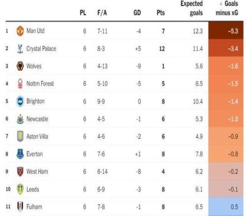 体坛周报全媒体报道英超开季6轮,曼联又来到了和上赛季相似的积分榜倒数位置,阿莫林下课声此起彼伏。不过,日前竞技网的一番数据分析显示,曼联可能并没有积分显示得那么糟糕,阿莫