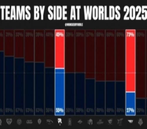 体育资讯11月4日报道宣称 今日外媒统计T1、KT S15选边情况,具体如下: T1是选用红色方次数最多的战队,共11次 KT的红蓝选边情况更为均衡 KT在蓝色